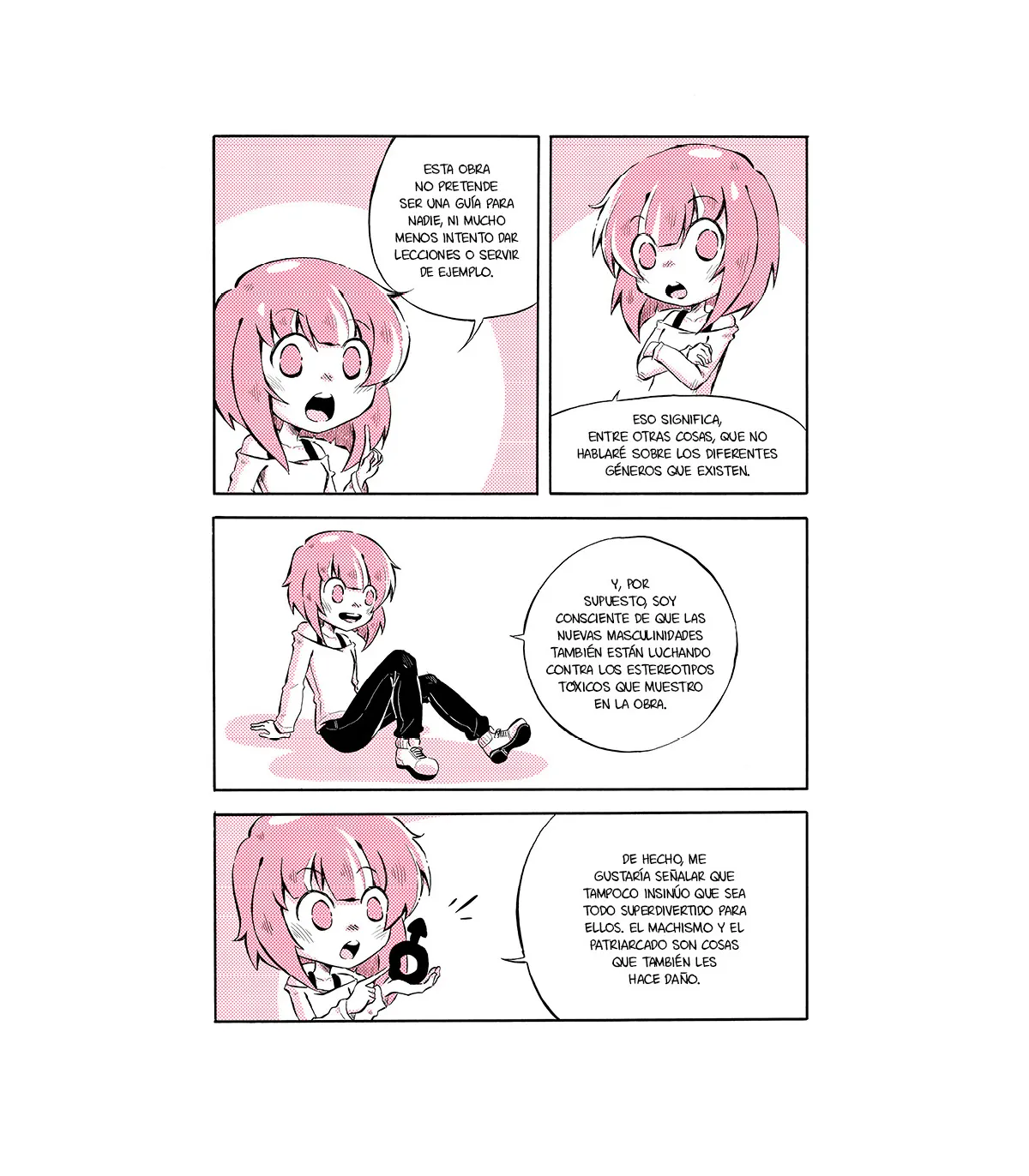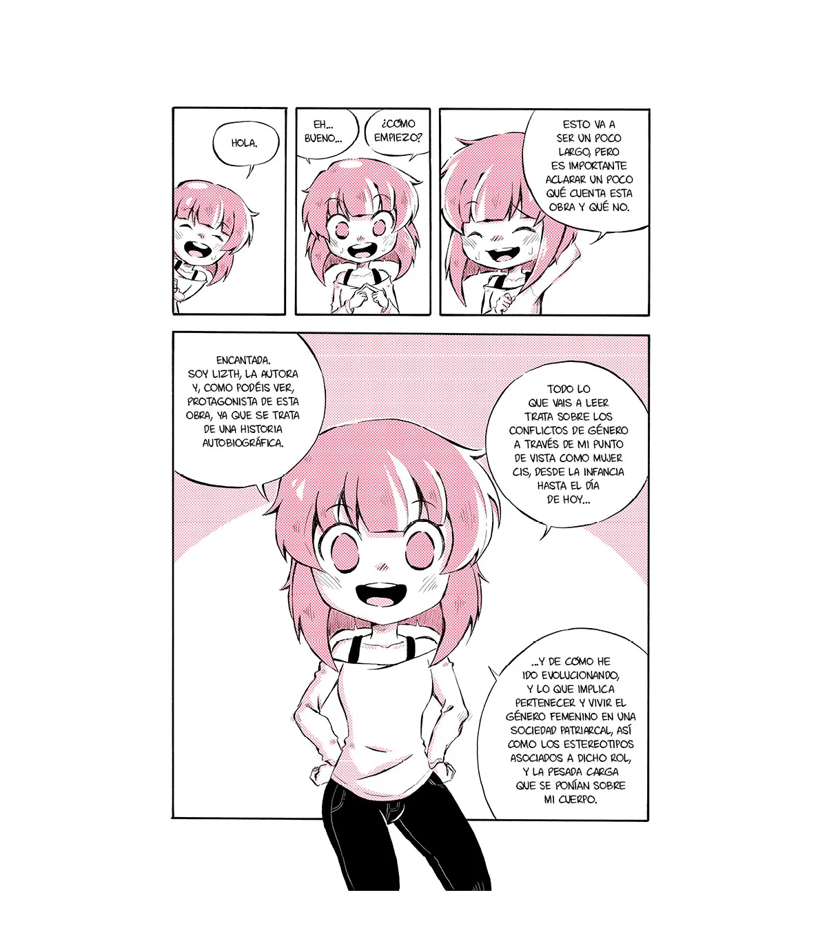 Una historia autobiográfica. Una mujer que siente que sería mejor vivir en otra posición. Con otro rol. Ser de otra forma. Y su reflexión la llevará a encontrar la causa en la presión social, las etiquetas de género y en situaciones violentas que la condicionaron a odiar todo lo femenino que había en ella.