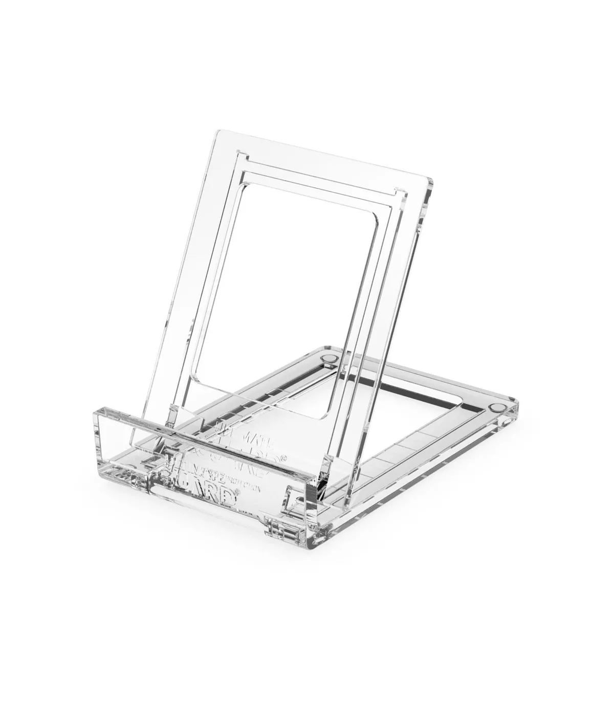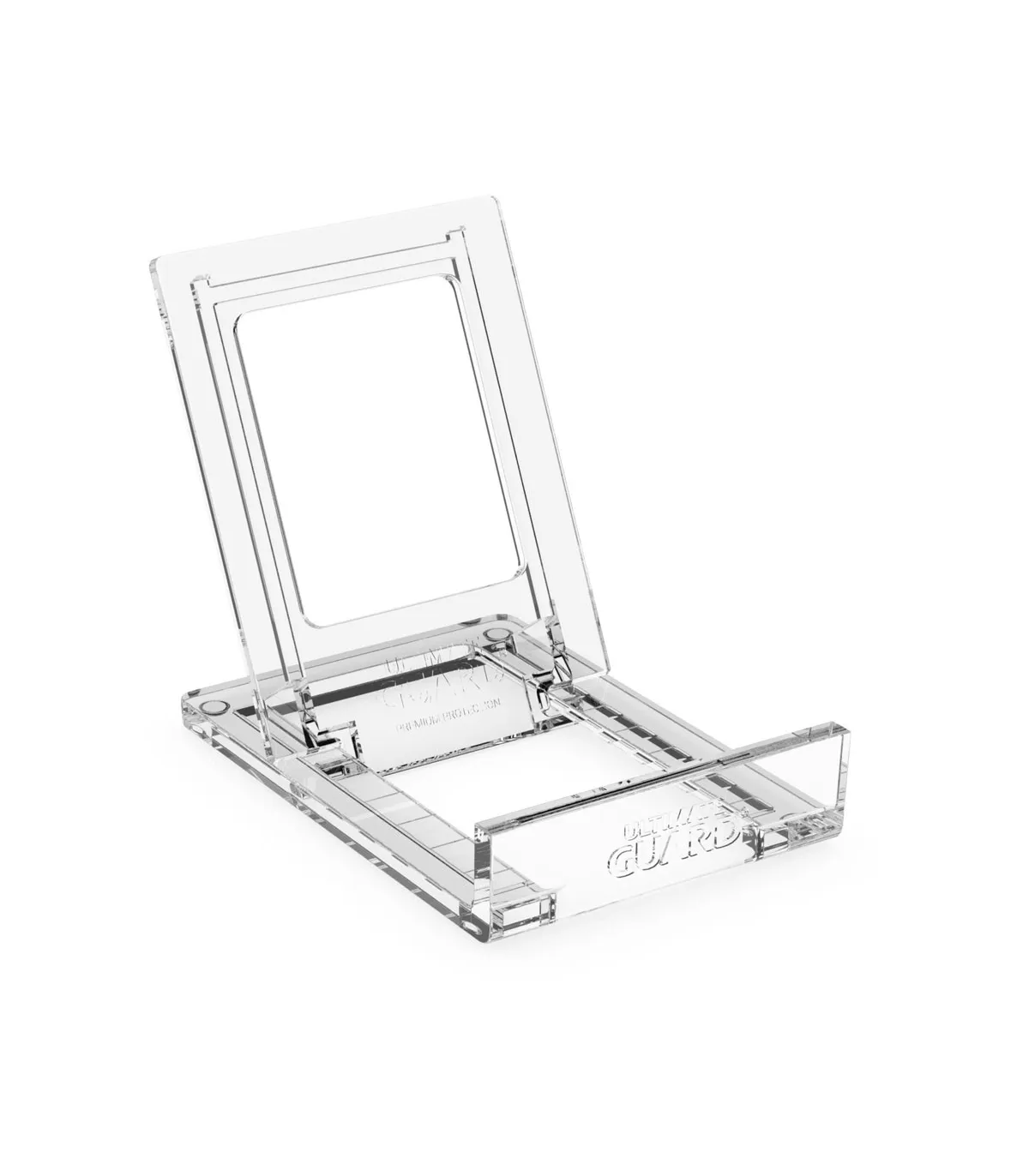 Nuestros Slider Stands te ayudan a presentar los tesoros más preciados de tu colección de forma atractiva. Dos robustas piezas transparentes que se deslizan de forma flexible en varias posiciones, lo que las hace universalmente compatibles. Optimizadas para contener las Magnetic Card Cases de Ultimate Guard en varios tamaños, son casi invisibles y muestran tus cartas y cajas de una forma llamativa sorprendente.