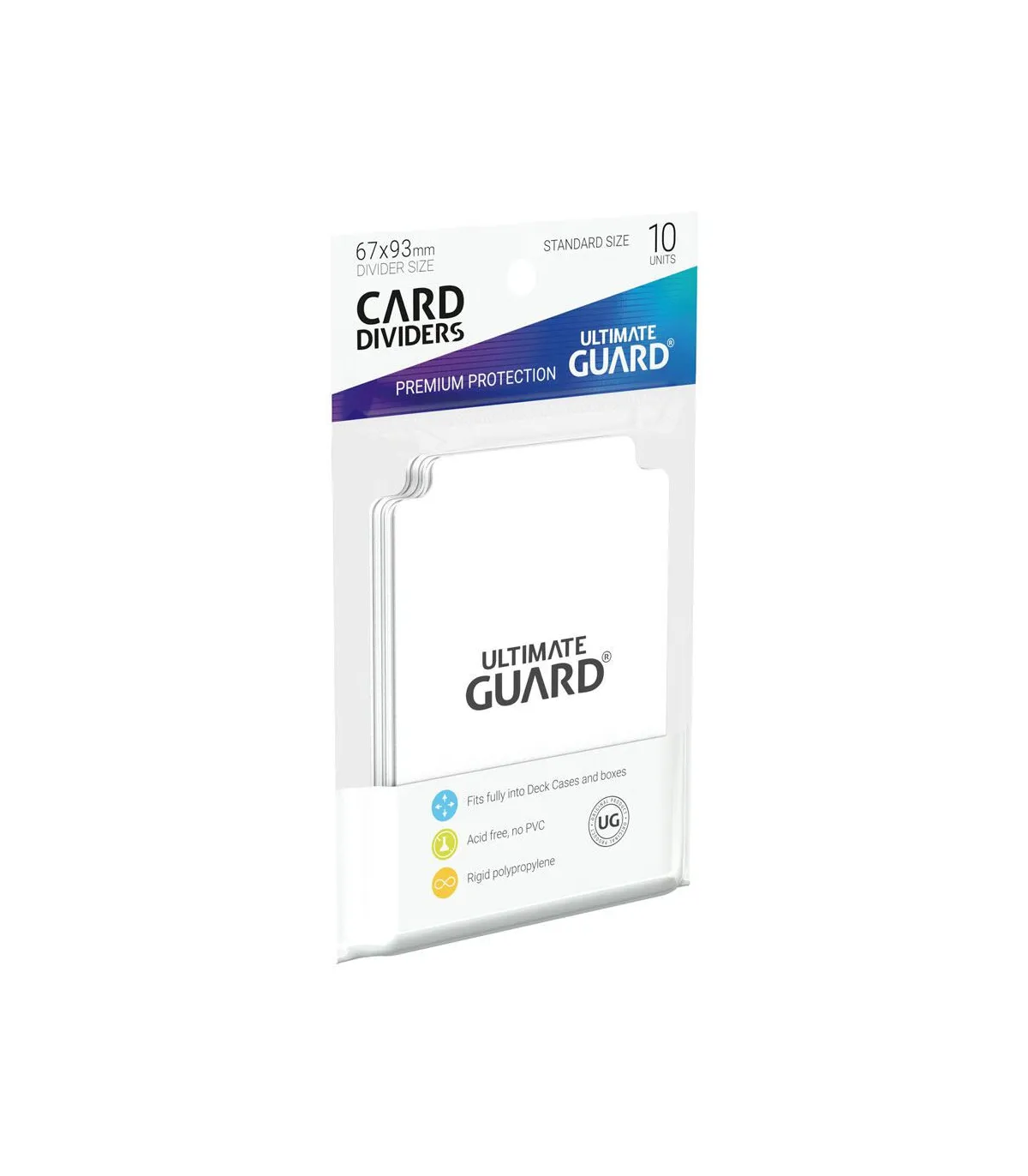 ¿Guardas tus cartas en cajas y es un lío a la hora de buscar? Ahora disponemos de las tarjetas separadoras de Ultimate Guard. En cada paquete vienen 10 y podrás clasificar tus cartas y colecciones ya que entran perfectamente en cualquier Card Case o cualquier caja de almacenamiento.