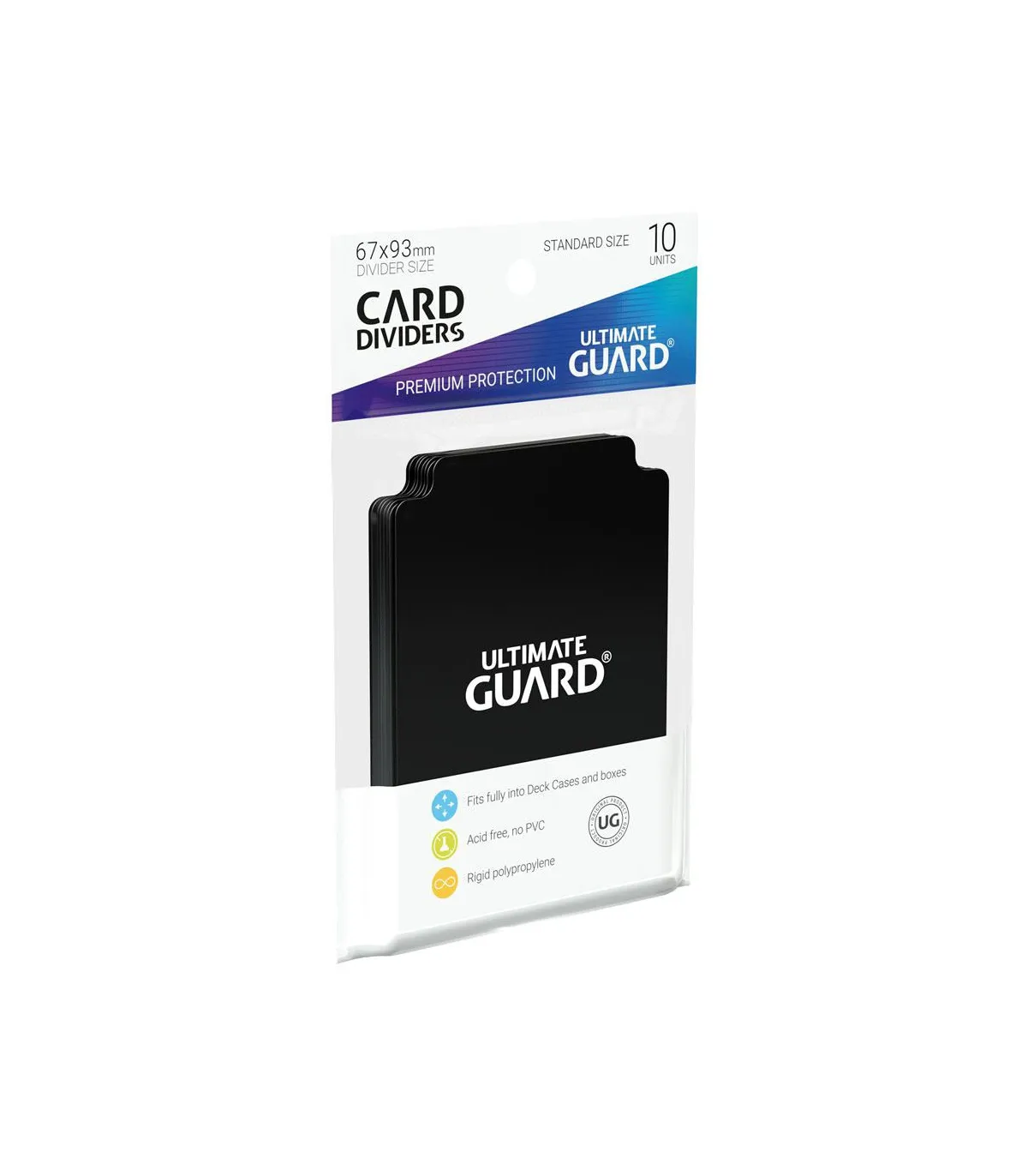 ¿Guardas tus cartas en cajas y es un lío a la hora de buscar? Ahora disponemos de las tarjetas separadoras de Ultimate Guard. En cada paquete vienen 10 y podrás clasificar tus cartas y colecciones ya que entran perfectamente en cualquier Card Case o cualquier caja de almacenamiento.