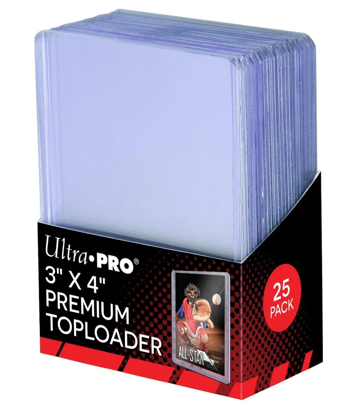 Paquete de 25 Toploaders Premium, de tamaño 63.5 mm x 88.9 mm (3" x 4"), recomendadas para cartas como Pokémon, One Piece, Digimon, Dragon Ball, Magic...
