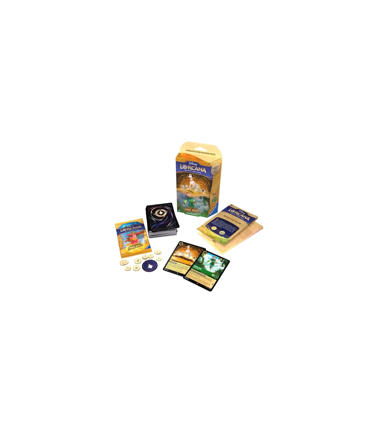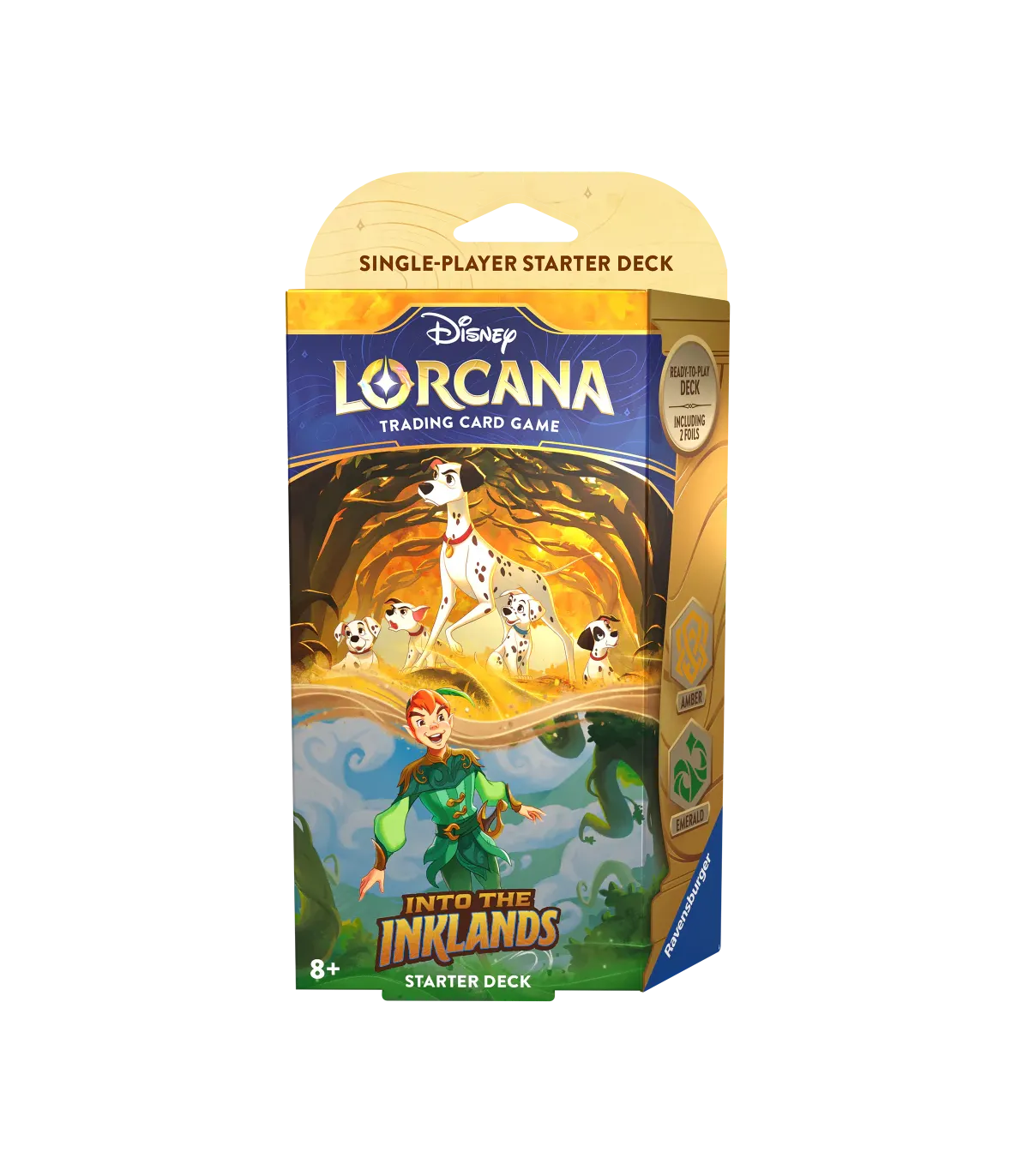 Este mazo te permite iniciar tu aventura con cartas exclusivas de los adorados personajes Pongo y Peter Pan, usa estrategias poderosas usando las tintas ÁMBAR y ESMERALDA, perfecto para jugadores principiantes y veteranos por igual.