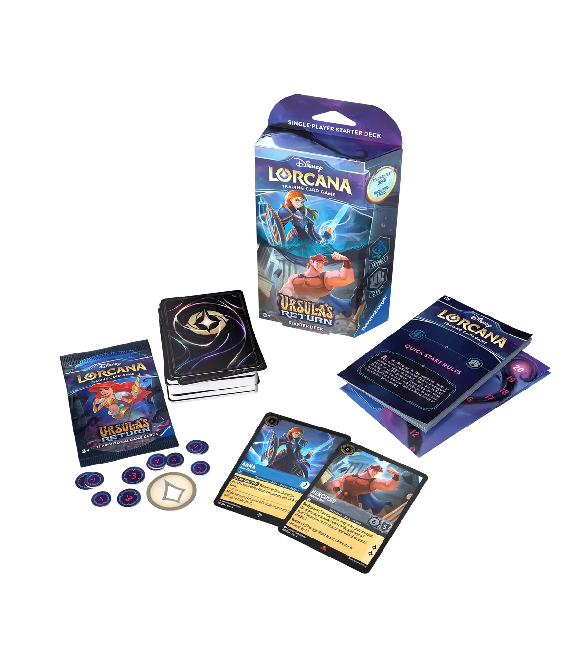 Este mazo te permite iniciar tu aventura con cartas exclusivas de los adorados personajes Anna de Frozen y Hércules, usa estrategias poderosas usando las tintas ZAFIRO y ACERO, perfecto para jugadores principiantes y veteranos por igual.