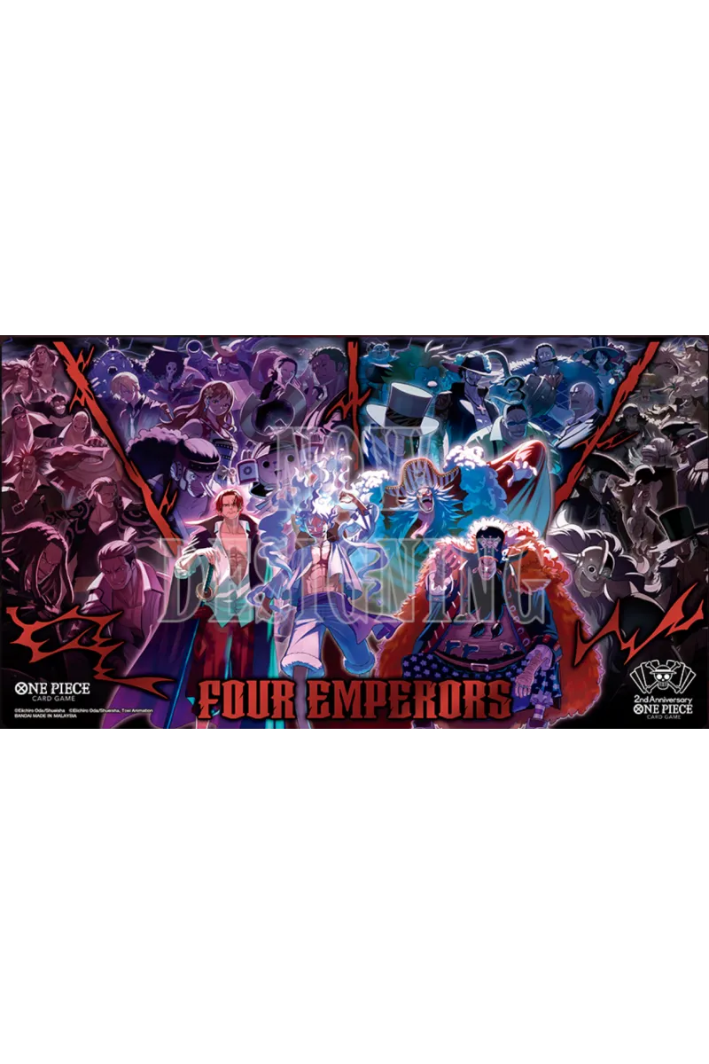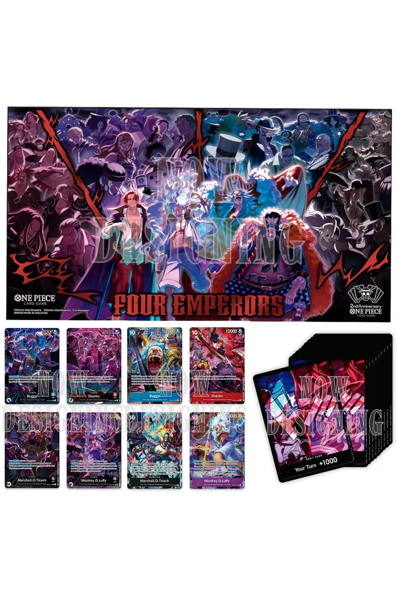 ¡Celebra el 2º Aniversario del ONE PIECE CARD GAME en su versión INGLÉS con este espectacular set de colección! Esta edición especial presenta a los Nuevos Cuatro Emperadores y viene cargada de artículos de lujo ideales para jugadores y coleccionistas.