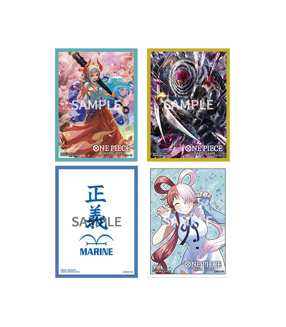 Llegan las fundas oficiales de One Piece TCG, el tamaño perfecto para poner tus cartas de One Piece con el arte y color de Yamato, Charlotte Katakuri, el logo de la Marina (Navy) y Uta.