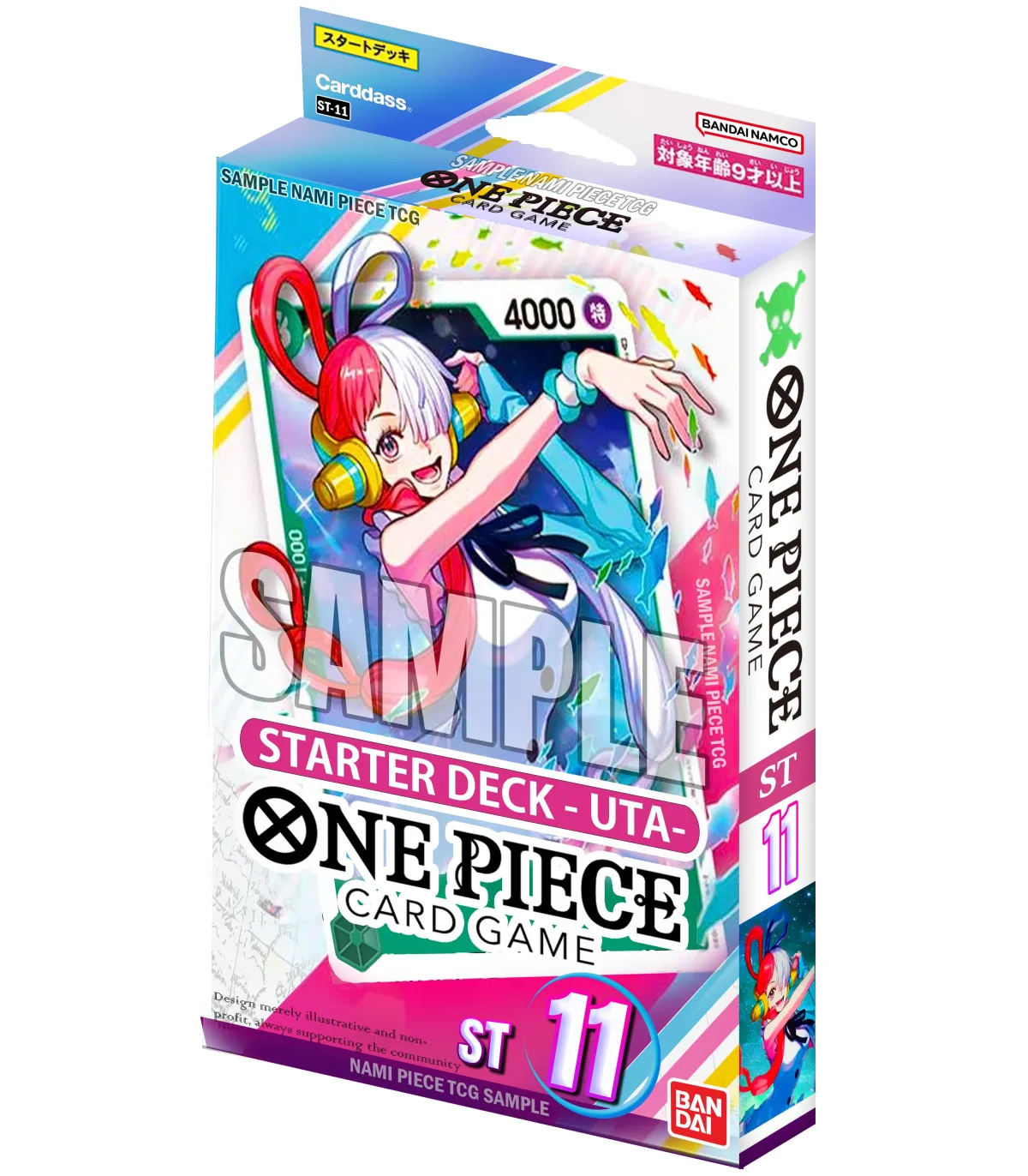 Llega el Starter Deck (Mazo preconstruido) de la diva musical de One Piece, enfréntate a tus oponentes con la poderosa Uta Leader de color Verde, contiene cartas FILM que combinadas pueden ser una buenísima opción para jugar competitivo.