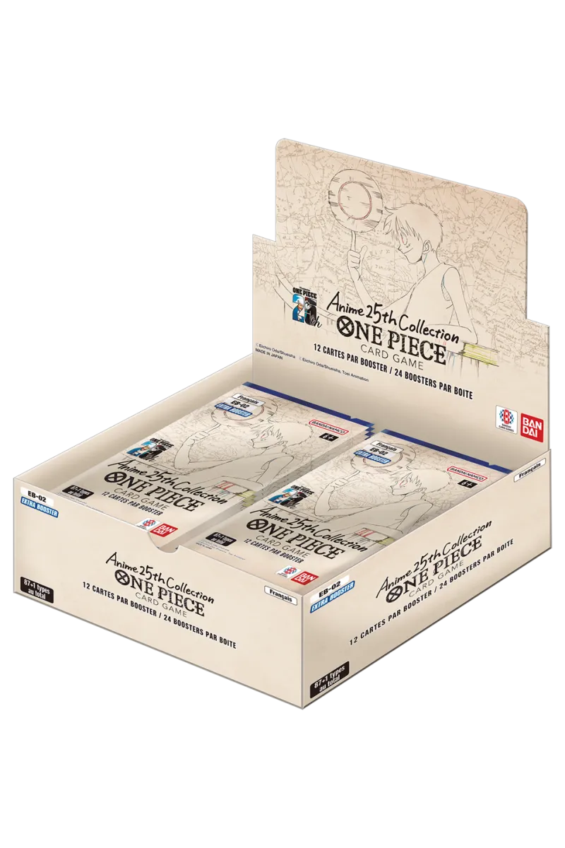 Esta caja contiene 24 sobres de EB-02: Extra Booster Anime 25th Collection y cada sobre contiene 12 cartas.